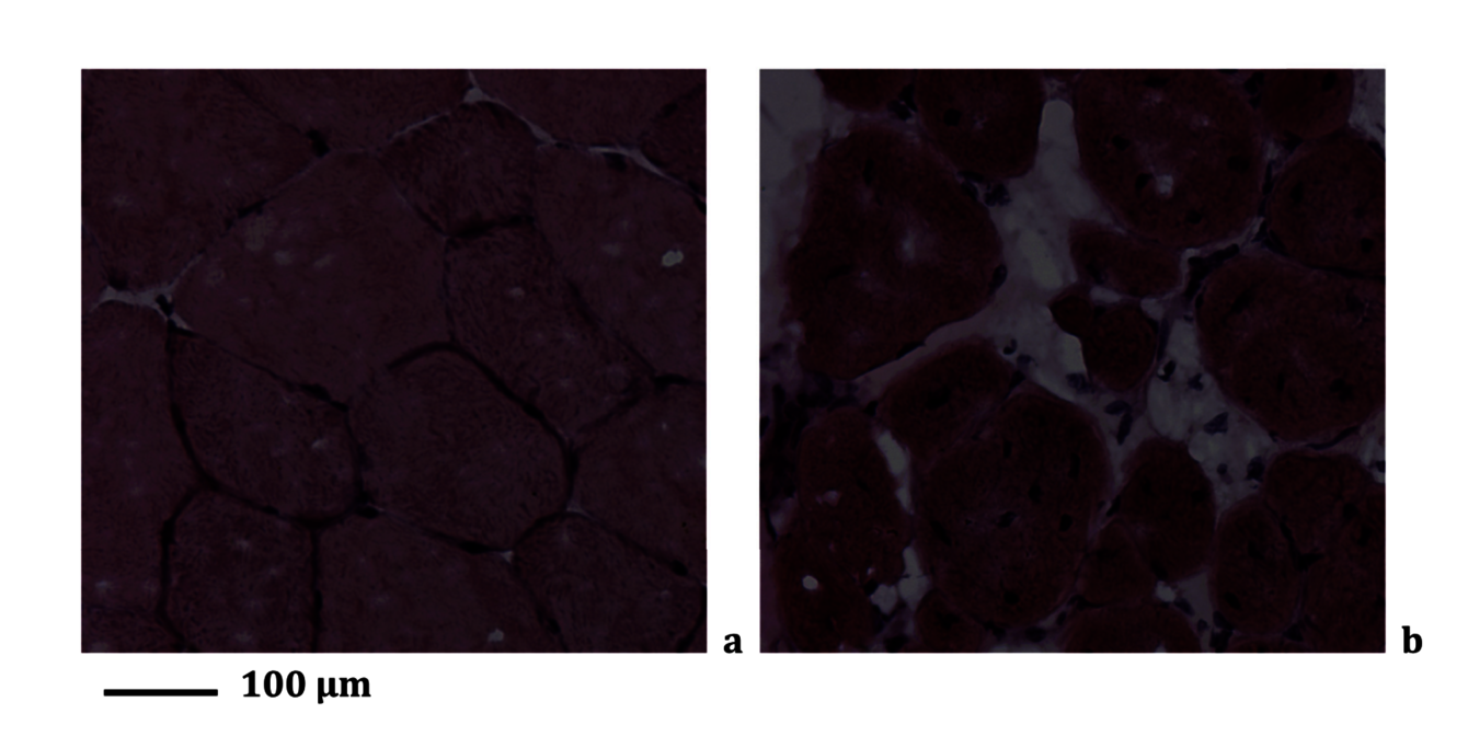 → Images histologiques d'un muscle issu d'un modèle murin, montrant à gauche la jambe contrôle et à droite la jambe ischémique, dans un modèle développé par notre équipe de recherche. Les coupes, réalisées à différents temps post-opératoires, sont colorées pour révéler les altérations tissulaires liées à l’ischémie chronique, notamment la nécrose, l’inflammation et la régénération. Images issues de Lejay et al. (2015) - Eur J Vasc Endovasc Sur.